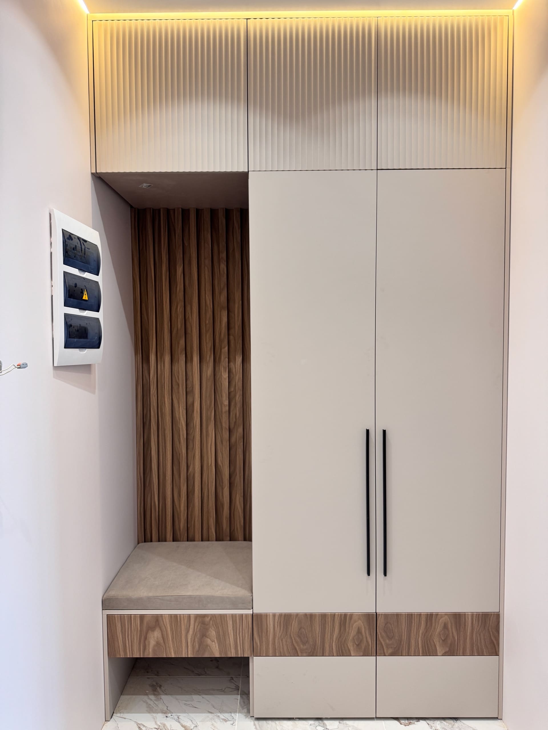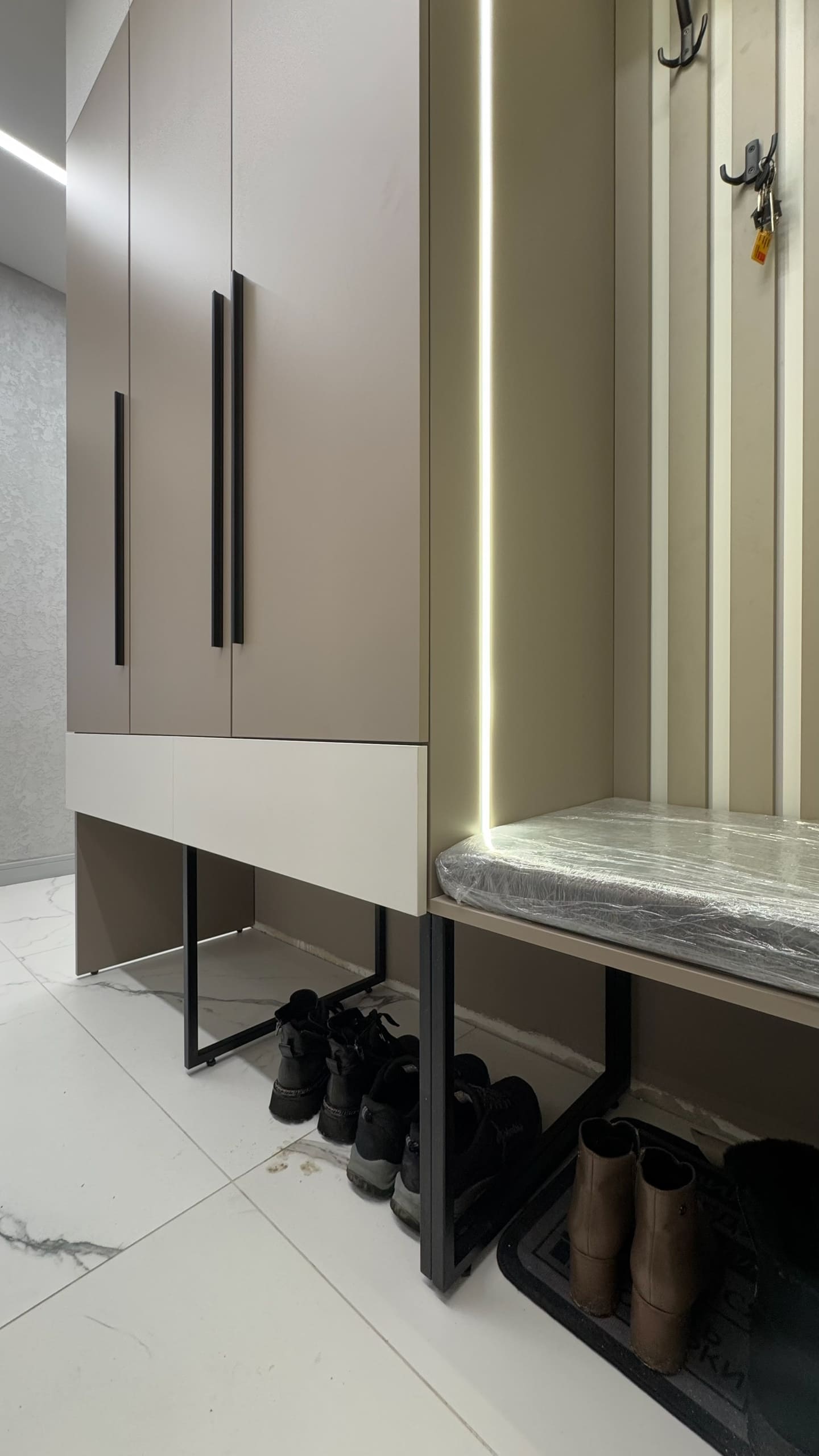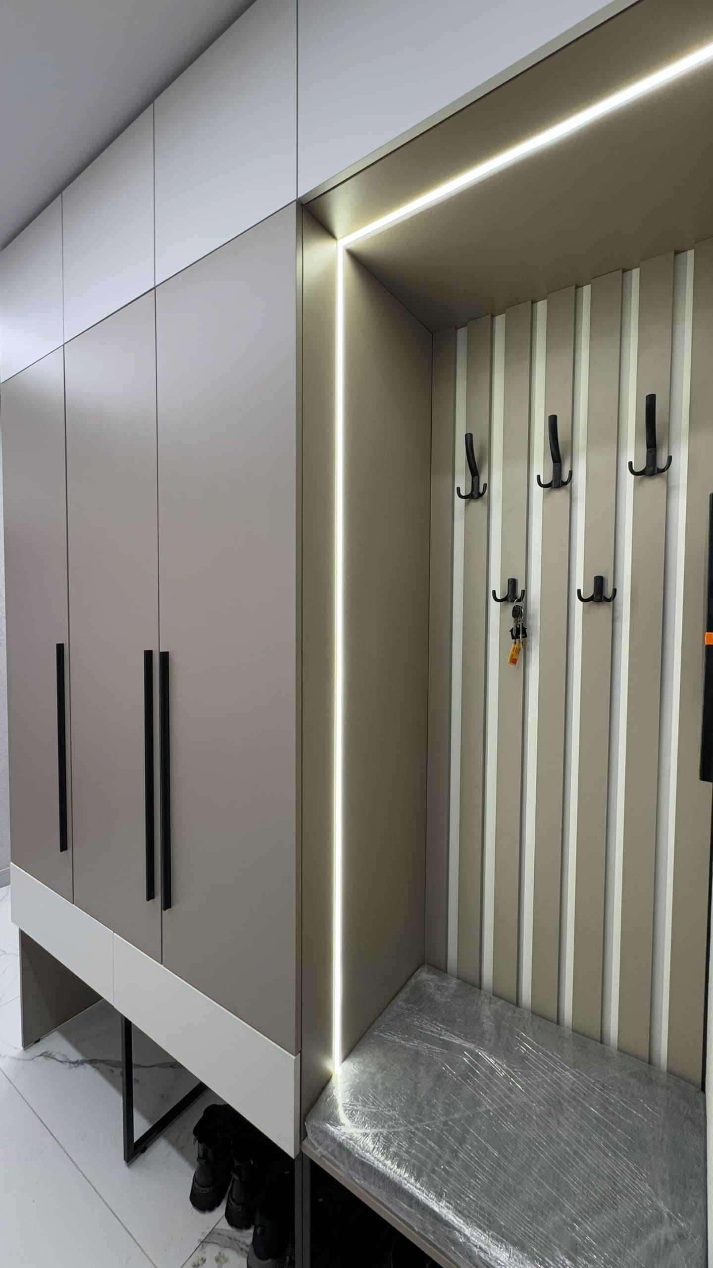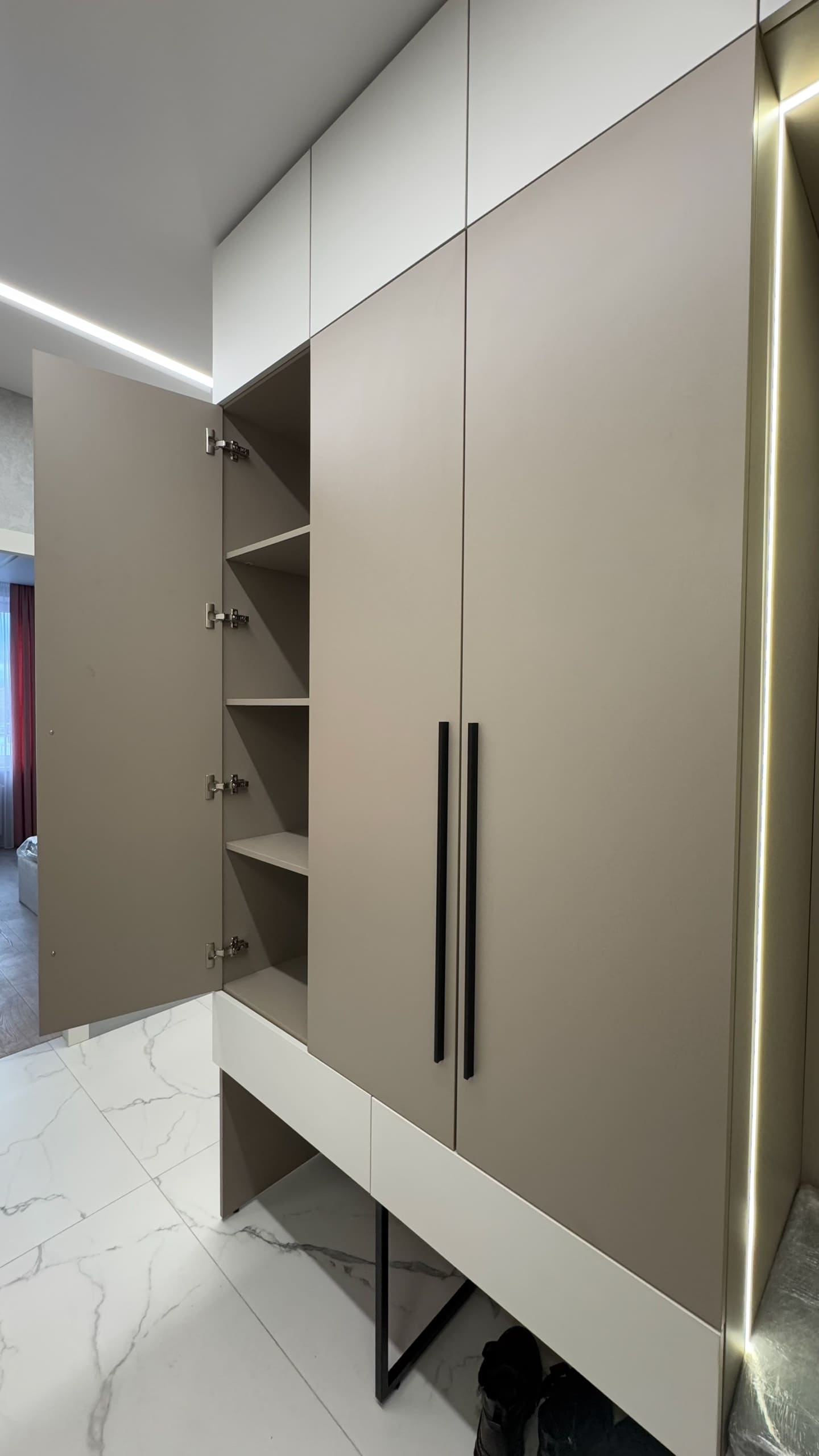 Описание: Длинный шкаф в прихожую вдоль стены.